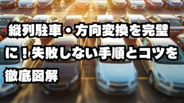 技能教習の第二段階に入ると、縦列駐車と方向変換という難しい課題が待っています。「何度やっても上手くいかない」「検定で失敗したらどうしよう」と不安に感じる方も多いのではないでしょうか。 これらの技能は確かに難しいものですが、正しい手順とコツを理解すれば、一般的なケースとして着実に上達できます。本記事では、縦列駐車と方向変換の詳しい手順を図解とともに解説し、検定で失敗しないためのポイントをお伝えします…